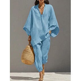 Dame Bukser Slacks Sommerbukser Posede bukser Ferie Årgang Gade Fuld længde Naturlig Helfarve Vanlig Snørelukning Lomme Bredt Bukseben Letvægt Udendørs Bekvem Uelastisk udendørs Streetwear Ferierejse