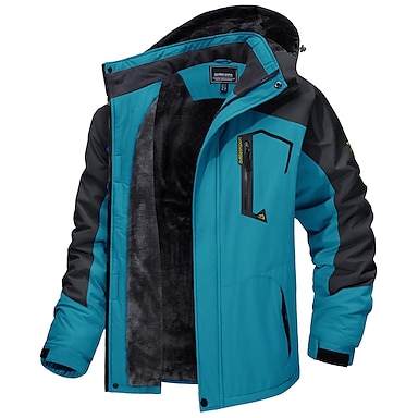 Herre Trekking-jakke Skijakke Regnjakke Vindjakke Sport & Udendørs Campering & Vandring Hold Varm Fleecefoer Vinter Efterår Helfarve Denim blå Sort Rød Kongeblå Blå Jakker