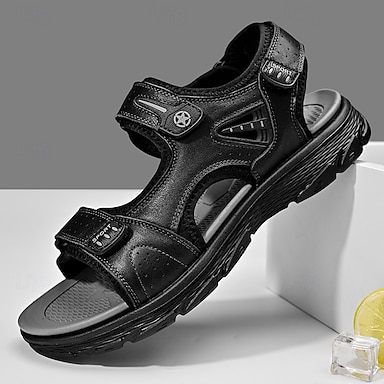 udendørs sandaler i imiteret læder til mænd – åndbart gladiatordesign med justerbar snøre til vandreture, strand og afslappet sommertøj