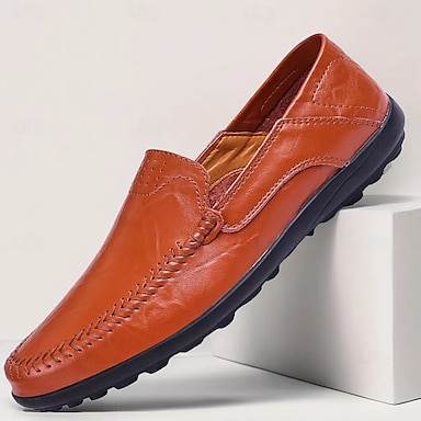 mænds solbrunt imiteret læder slip-on loafers med håndsyede detaljer – behagelige fritidssko til arbejde, rejser og hverdagsbrug