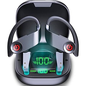 Bluetooth 5.1 høretelefoner sports earbuds 50H dyb bas støjannullerende hovedtelefoner med mikrofon IP7 vandtæt over-ear hovedtelefoner USB-C/LCD display til løb