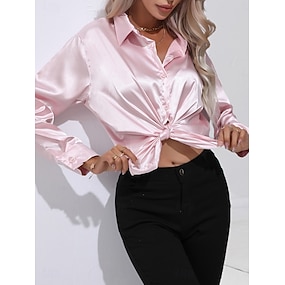 Dame Skjorte Elegant Pæn Satin top Knapper Helfarve Forretning Moderne Afslappet Langærmet Krave Almindelige toppe Arbejde Formel beklædning Lyserød Grøn Beige Sommer Forår
