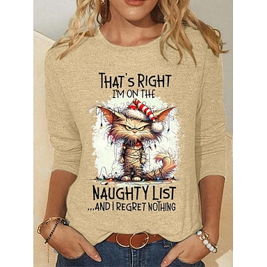 Jul Dame T-shirt Vinglas Årgang Stilfuld Klassisk Langærmet Rund hals Almindelige toppe Weekend Trykt mønster Sort Lyserød Blå Kakifarvet Vinter