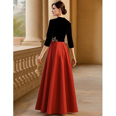 A-Linje Te-længde Promkjole Festkjole Cocktailkjole Mor til bruden Kjole 3/4 Længde ærme Crew Neck Elegant Vintage Fest med Applikationer Farveblok