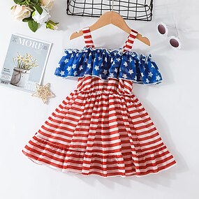 Børn Pige Amerikansk uafhængighedsdag Kjole Flag A Linje Kjole Over knæet Kjole Daglig Patchwork Bomuld Kortærmet Sød Stil Kjole 1-5 år Forår Blå Vin Rød