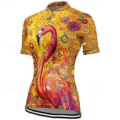 Dame Cykeltrøje Kat Hund Blomst Kortærmet Cykel T-shirt Trøje med 3 baglommer Bjerg Cykling Hurtigtørrende Anatomisk design Anti Sved Åndbart Sport Gul Orange Grøn Tøj
