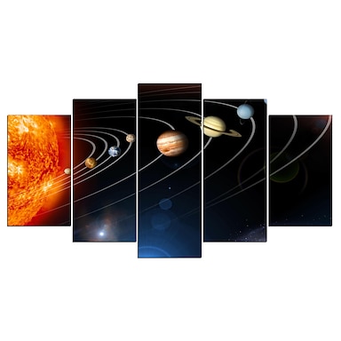 uindrammet 5 paneler rum univers jord lys maleri lærred kunst maleri væg kunst