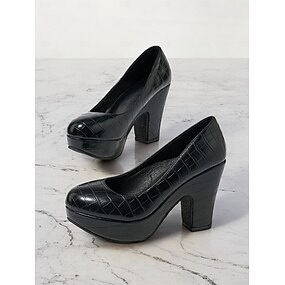 sorte, krokodilleprægede platformshæle til kvinder – tykke blokhæle til stilfuldt aftentøj og formelle lejligheder