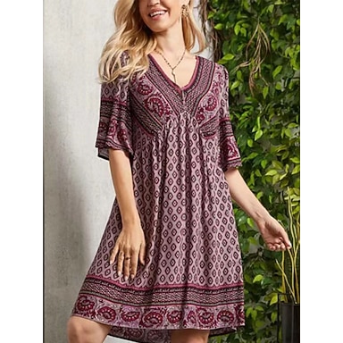 Dame Mini kjole Hverdagskjole A Linje Kjole Boho-kjole Boheme Etnisk Afslappet Ferierejse Daglig Regulær Blomstret 3/4-ærmer V-hals Lilla Rosa Grøn Forår Efterår