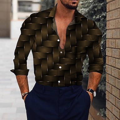 Herre 3D Print Skjorte Button Up skjorte Langærmet Mode Designer Afslappet udendørs Gade Afslappet Sommer Forår Aftæpning Trykt mønster Knap ned Sort Vin Blå Brun Grøn