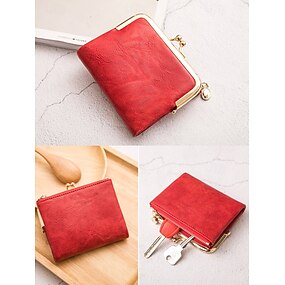 Rød pung i kunstlæder til kvinder med kiss lock og lynlås, plads til flere kort, stilfuldt vintage-design til daglig brug, shopping og afslappede udflugter