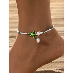 Flerfarvede boheme-ankelkæder i harpiks og legering til kvinder, perle- og skaldesign, perfekt til ferie, afslappet hverdagsbrug