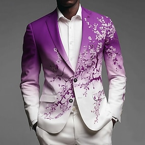 Herre Blomstret mønster Blazer jakke Frakke Bekvem Åndbart Kunstnerisk Afslappet Daglig Formel Festaftentøj 3D-udskrivning Knapper Multi lomme Forår Efterår vinter Hakrevers Langærmet Blå Lilla Grøn