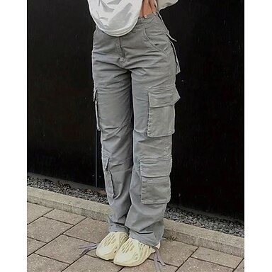 Dame Cargo-bukser Bukser Mode Gade Fuld længde Naturlig Ensfarvet Multi lomme Bekvem Mikroelastisk Sport & Udendørs Dagligdagstøj Kakifarvet Mørkegrå Kaffe Grå Sommer Forår Regulær