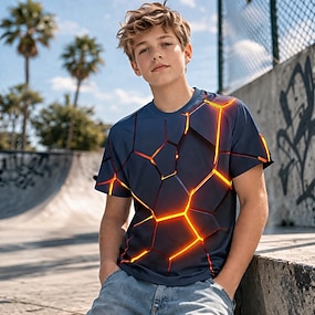 Drenge 3D Grafisk Geometrisk 3D Print T-shirt Kortærmet 3D-udskrivning Sommer Forår Sport Mode Gade Børn 4-12 år Rund hals Afslappet Daglig udendørs Regulær