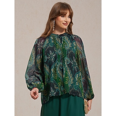 Dame Skjorte Bluse Knapper Trykt mønster Grafisk Paisley Etnisk Mode Langærmet Lanterne Ærme V-hals Almindelige toppe Afslappet Arbejde St.Patrick's Day Grøn Forår & Vinter