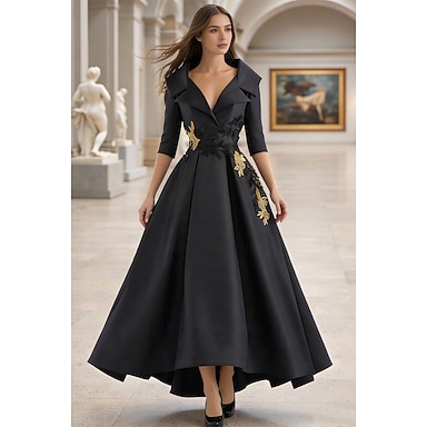 Perlebroderet kjole A-linje aftenkjole mor til bruden kjole formel kjole elegant bryllupsgulv længde halvlange ærmer skjortekrave satin med slidser applikationer