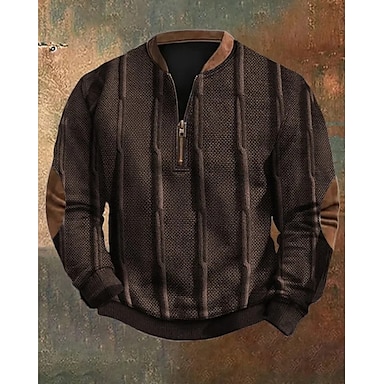 Herre Sweatshirt Kvart lynlås sweatshirt Sort Brun Halv lynlås Farveblok Halv lynlås Trykt mønster Rillet Sport & Udendørs Daglig Ferie Polyester Årgang Gade Afslappet Efterår vinter Tøj Hættetrøjer