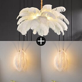 led pendel lysekrone lækker ekstra stor 75/100cm hvid strudsfjer2stk væglampe 110-240v