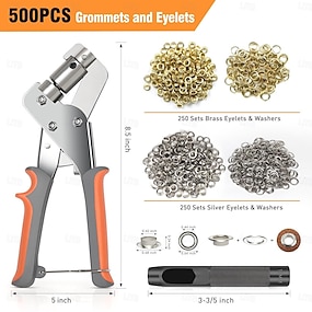 Kraftigt professionelt værktøjssæt til ringene 3/8 tommer 10 mm håndholdt snørehulsæt gør-det-selv håndholdt hulstansehulsæt med 200/500 snørehulspænder, monteringsværktøj til metallufthulsnitter