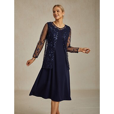 Kvinders Paillet Jakke Blazer Blonde Broderet Illusions Blonde Elegant Blomster Formelt Jubilæum Fest Bryllup Gæst Åben Front Korte Rund Hals Regular Fit 3/4 Ærme Yderbeklædning Marineblå