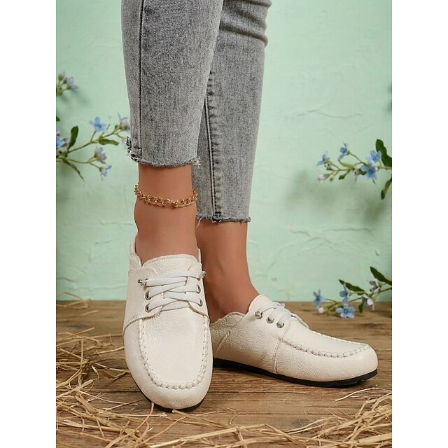 Hvide mokkasinloafers til kvinder – tovejs slip-on sko med justerbar hæl til daglig, afslappet og udendørs brug