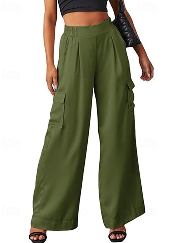 Dame Cargo-bukser Slacks Gade Afslappet Fuld længde Naturlig Vanlig Lomme Elastisk Talje comfy Udendørs Bekvem Ferierejse I-byen-tøj Abrikos Sort Blå Brun Efterår Regulær