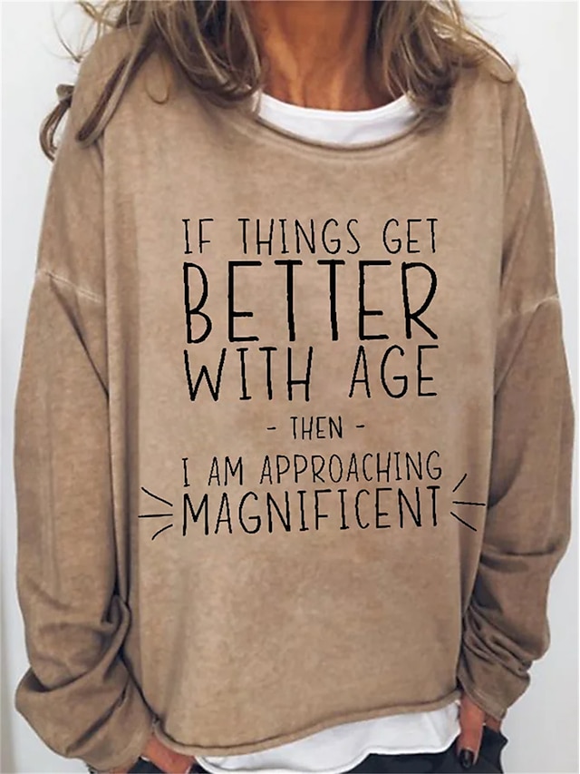 dame oversize sweatshirt pullover bomuldsblanding letter street casual sport basic rund hals langærmet top mikroelastisk efterår & vinterkomfort åndbart blødt stof