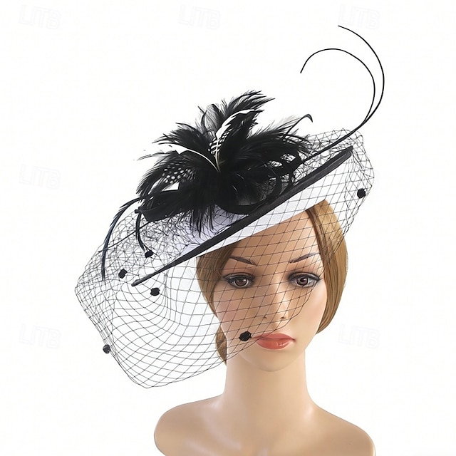 fascinators Bomuld Bryllup Fødselsdag Elegant Årgang Med Fjer Tyl Medaljon Hovedbeklædning 2026 - $46.99 –P1