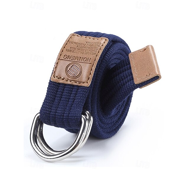 Julebælte i kanvas til mænd – justerbart bælte i bomuldsstof med læderrem og metalspænde med D-ring – fås i rød, marineblå, sort og mere – stilfuldt juletilbehør til mænd
