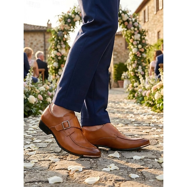 mænds tan imiteret læder munke rem sko med spænde detalje, elegant formelt fodtøj til erhvervslivet og særlige lejligheder