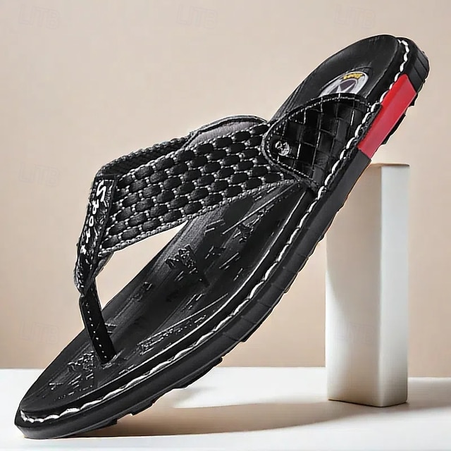 højtydende flip-flops i imiteret læder til mænd - sort og rød med racer-inspireret tekstureret rem til udendørs eventyr