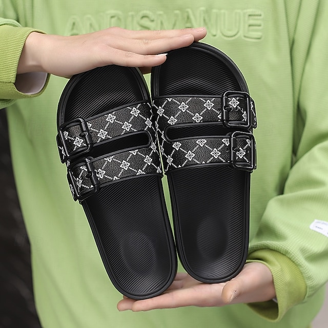 sorte slides til mænd med dekorative spændedetaljer - behageligt og trendy fodtøj til dagligt brug