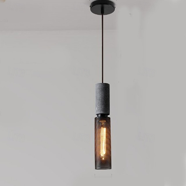 Industrielt betonpendellampe i cylinderdesign med metalskærm i net til køkken, spisestue, stue og bar