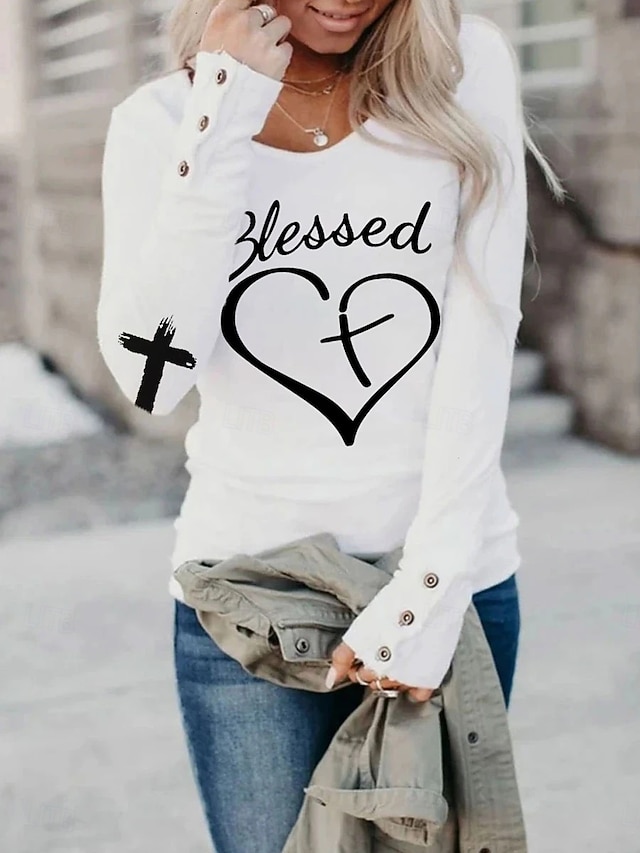 kvinders valentin sjov t-shirt mode hjerte bogstav almindelige toppe lange ærmer rund hals print regular fit valentinsdag weekend sort hvid pink vin forår & falde