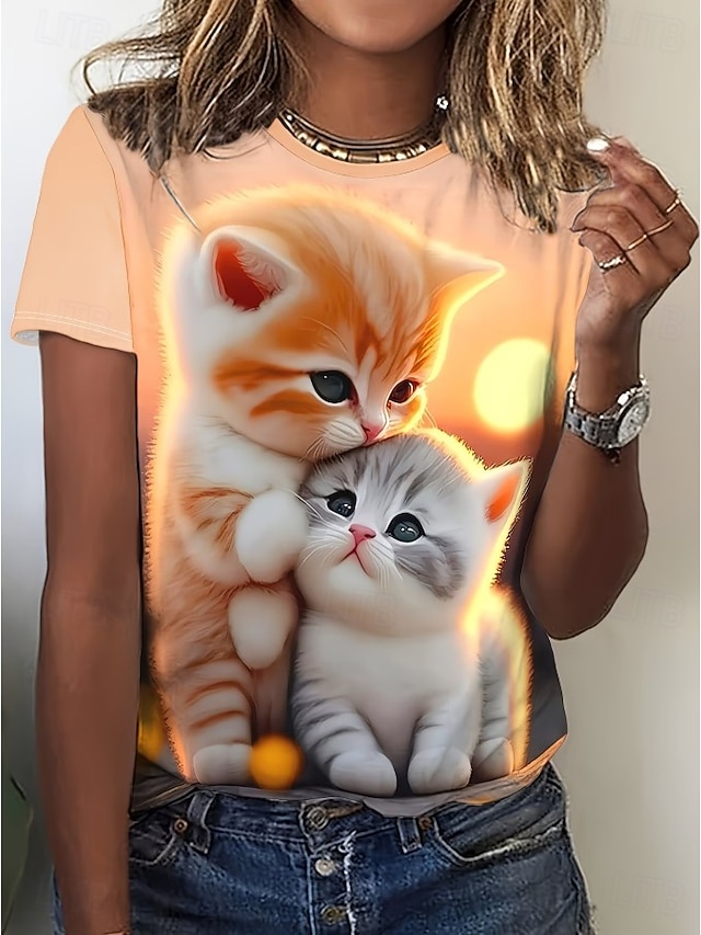 Påske Dame T-shirt Trykt mønster Grafisk Dyr Tegneserie Mode Stilfuld Klassisk Kortærmet Rund hals Almindelige toppe Afslappet Daglig Weekend Blå Lysegrøn Orange Sommer Forår