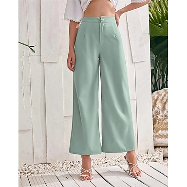 Dame Bredt Bukseben Afklippede bukser Palazzo bukser Mode Gade Ankel-længde Høj Talje Vanlig Åndbarhed Bekvem Gade Dagligdagstøj I-byen-tøj Grøn Sommer Forår Regulær