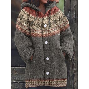 viking boho damecardigan vintage hverdag etnisk stil geometrisk farvegradient ribbet hættetrøje lomme knapper tryk langærmet lange toppe strik udendørs weekend gul blå efterår vinter