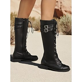 Knæhøje ridestøvler til damer med snørebånd, kraftig sål og lynlåslukning, stilfuldt og behageligt fodtøj til både afslappede udflugter og hverdagsbrug.