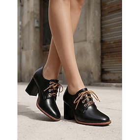 dame vintage brune oxford høje hæle - klassiske wingtip snørebånd blokhæle med brogue-detaljer til kontorarbejde, daglig skolemode &afslappet tøj