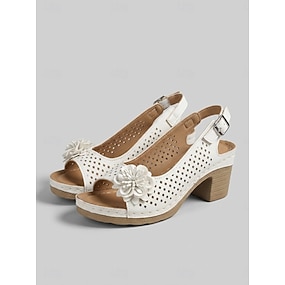 slingback-sandaler med blomsterudskæring til kvinder – komfortable sommersandaler med kraftig hæl til afslappet og havefest