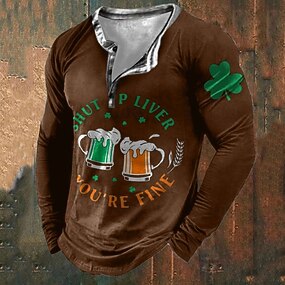 Shamrock Øl Mode Afslappet Herre 3D-udskrivning Henley-skjorte T-shirt T-shirt Afslappet Ferie I-byen-tøj St. Patrick T-shirt Grøn 1# Grøn 2# Sort Langærmet Henley Skjorte Forår & Vinter Tøj S M L XL