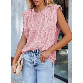 Dame Tanktop Vanlig sparkly Mode Uden ærmer Rund hals Almindelige toppe Afslappet Pailletter Sølv Sort Lyserød Guld Sommer