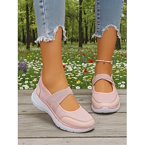 Pink Mary Jane-sneakers til kvinder – åndbare, lette slip-on sportssko i mesh til gåture, fritidstøj, rejser og daglige aktiviteter