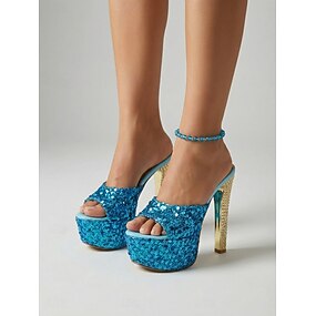 Women's Blue Glitter Platform High Heel Sandals, Open Toe Stiletto Party Shoes for Nightlife, Clubbing & Glamorous Evening Looks