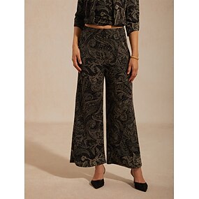 Damen Gerade Elegant Volle Länge Mittlere Hüfthöhe Paisley-Muster Elastischer Bund Dehnbar Urlaub Alltagskleidung Alltagstauglich Schwarz Sommer Frühling Herbst