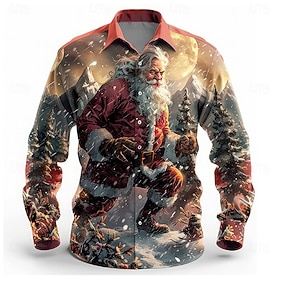 Weihnachten Herren Weihnachtskostüm bedruckte Hemden Hemden Weihnachtsmann Grafikdrucke hässlicher Turndown Schwarz und Rot Wein Weiß + Rot Rot / Weiß Rot 3D-Druck Straße Langarm Button-Down-Druck