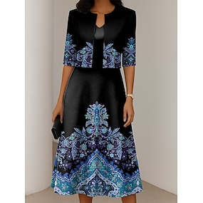 Damen Kleid-Set A Linie Kleid Urlaub Boho Grafik Paisley-Muster Geschichtet Druck Maxikleid Dreiviertelarm V Ausschnitt Täglich Strand Dunkelpink Leicht Braun Dunkelblau Sommer Frühling Normale