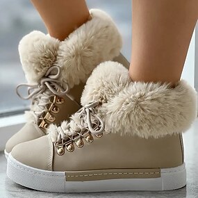 Wasserdichte Winterwanderstiefel für Damen – isolierte Schneestiefel zum Schnüren mit Kunstpelzkragen für Abenteuer im Freien