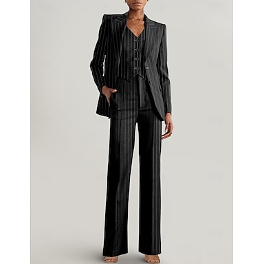 Damen Anzugweste Formell Party Arbeitskleidung Elegant Nadelstreifen Ärmellos V Ausschnitt Einreihig